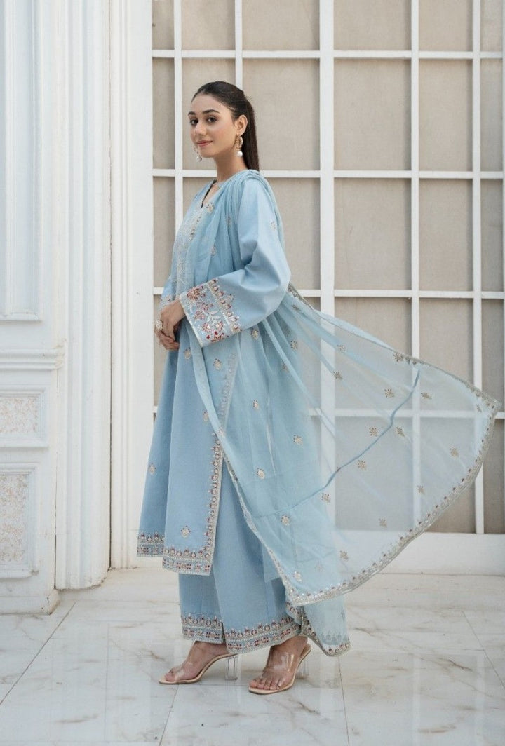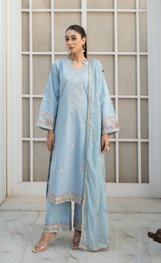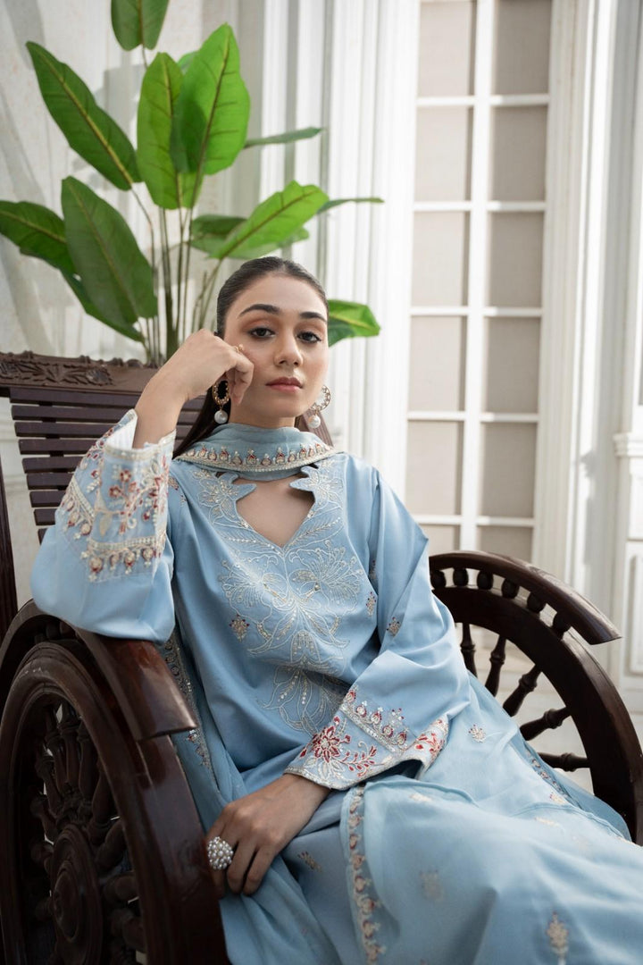 Blue Azure Petal 3 piece Embroidered Luxury Pret For Women