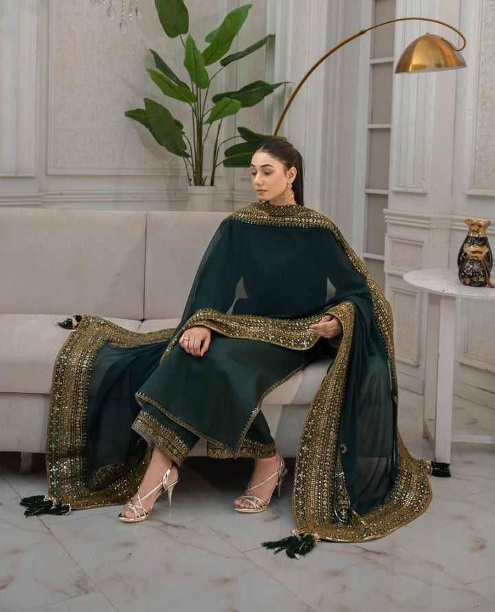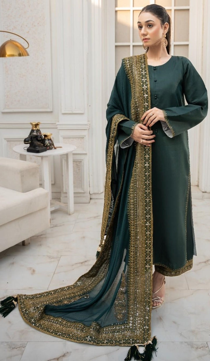 Green Mystique 3 piece Embroidered Luxury Pret For Women