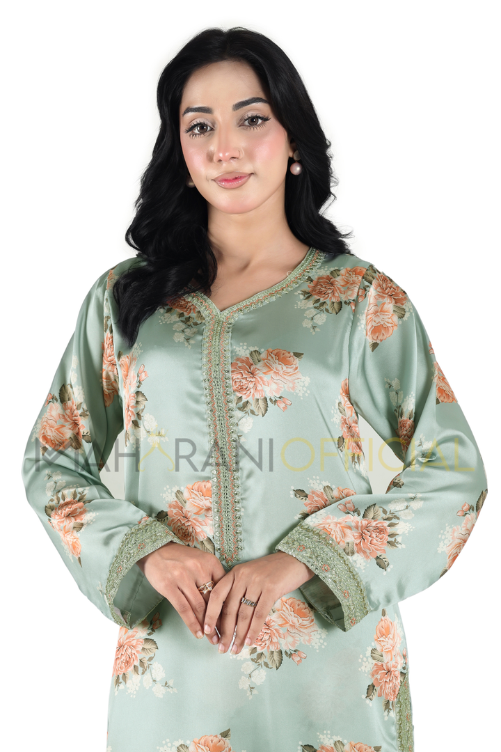 This beautiful Green Silk 2-Piece Suit offers a perfect blend of traditional elegance and modern style. The ensemble is crafted from a smooth, flowing silk fabric, giving it a rich drape and a subtle, appealing sheen.