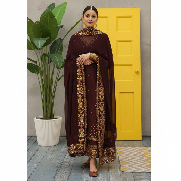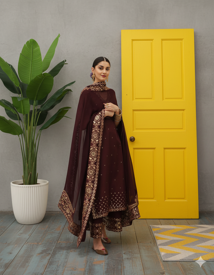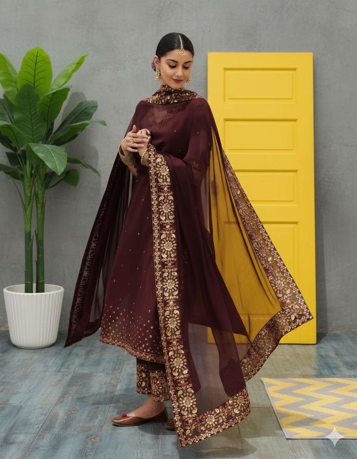 Mahroon Grace 3 piece Embroidered Luxury Pret For Women