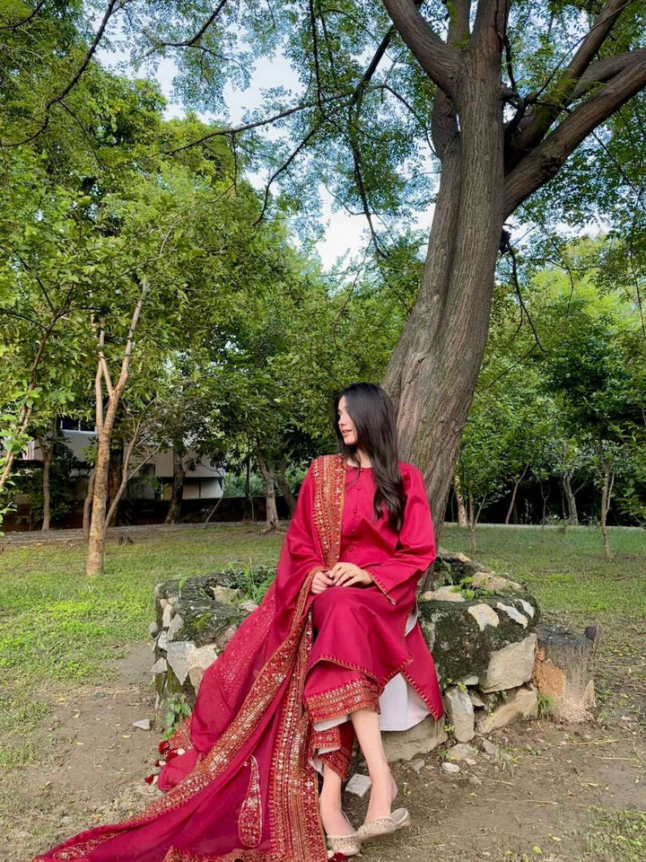 Introducing Mahroon Mystique, a timeless 3-piece stitched suit that brings together elegance, rich tradition, and fine craftsmanship. Designed in a deep mahroon shade, this ensemble is for the woman who values heritage while embracing a graceful, modern presence. The bold yet classic color symbolizes power, warmth, and mystery—perfect for the festive season.
