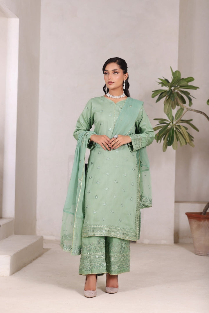 - Embroidery: Intricate hand embroidery on sleeves, neckline, and trousers