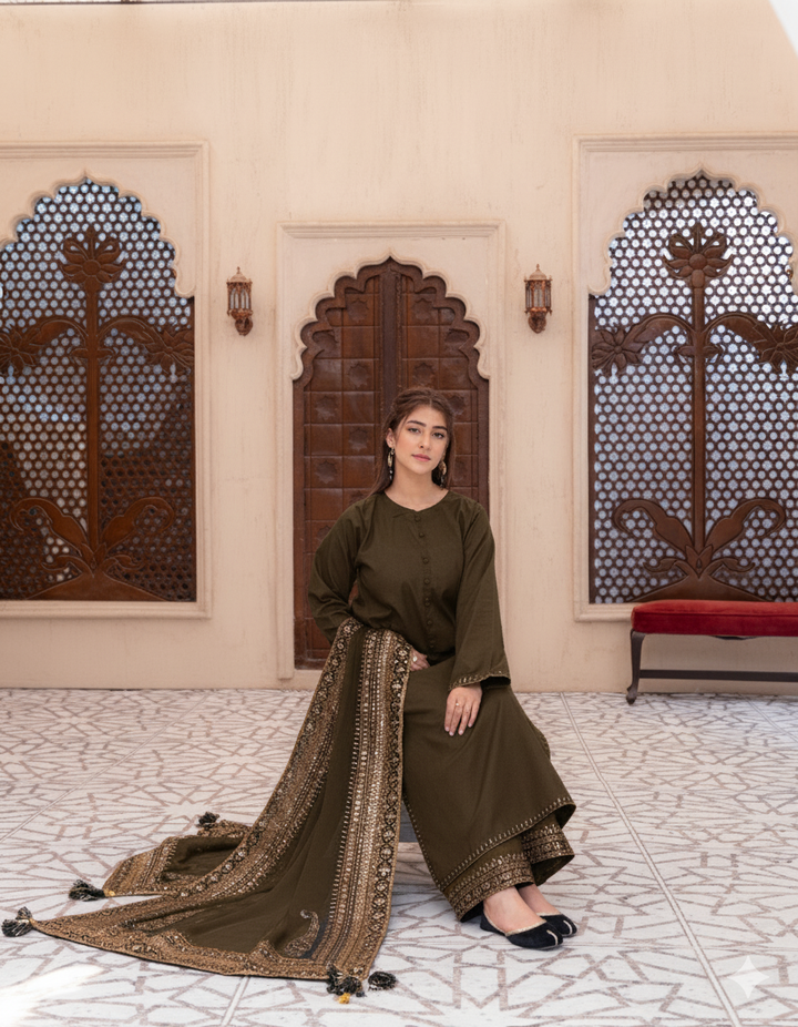 Tabacco Mystique – Luxury Embroidered Suit for Women